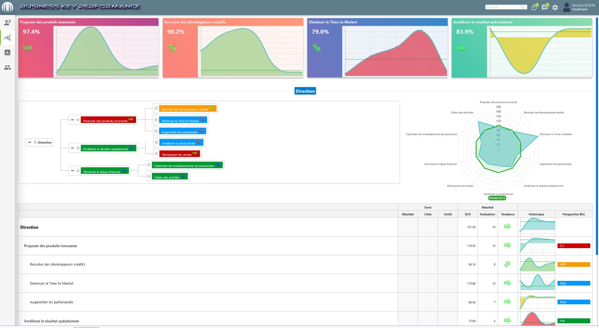 Business Key Performance est une application en ligne qui vous permet sans pré-requis technique de prendre la main sur votre stratégie et la décliner vers les services concernés.