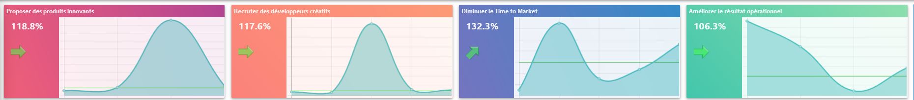 Business Key Performance permet de suivre de manière intuitive et visuelle la performance atteinte et la trajectoire suivie par rapport aux prévisions.
